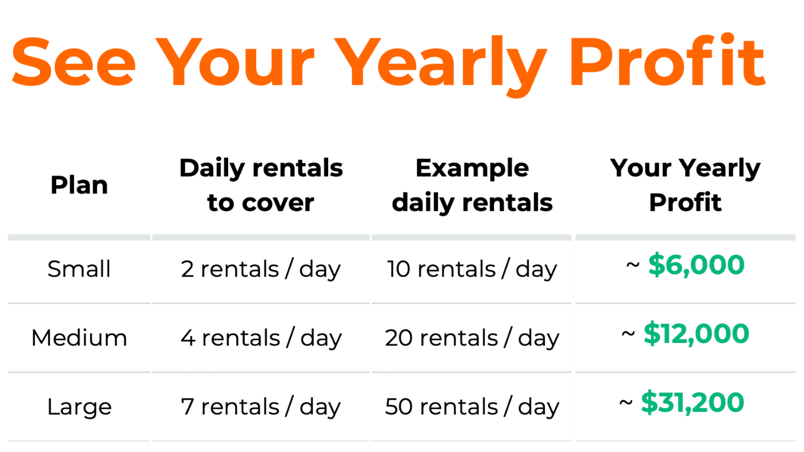 "Yearly Profit" numbers already include all FitButlr™ subscription and per-rental fees, so everything above the daily break-even is additional profit for your gym. Ready to turn those numbers into your own plan?